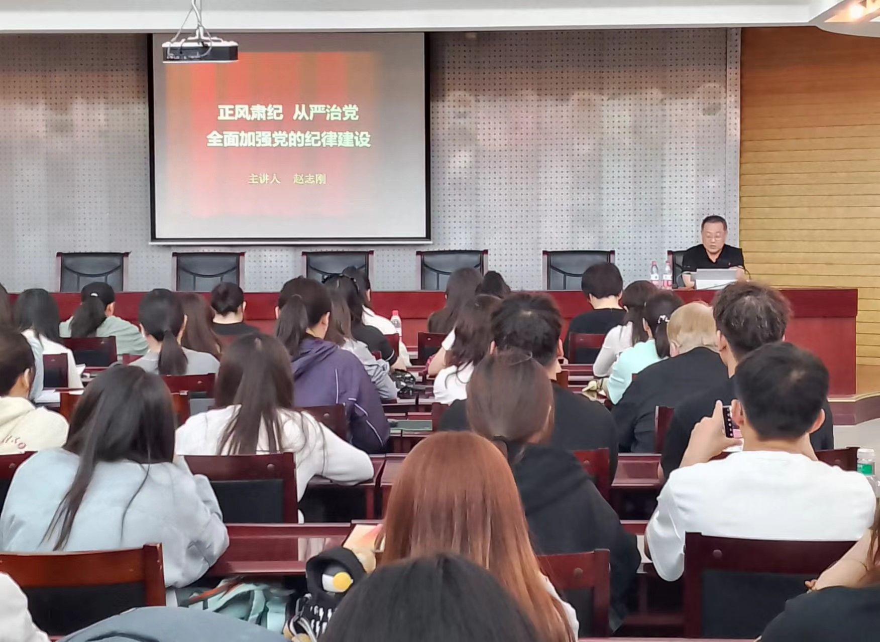 为了推动党纪学习教育进一步走深走实,不断用党规党纪校正思想和行动,增强纪律意识、提高党性修养,202466日下午,2026世界杯官网党委特邀包头市委党校副校长赵志刚同志做了题为《正风肃纪 从严治党——全面加强党的纪律建设》的党纪学习教育专题讲座。讲座由学院党委副书记、副院长薛建春同志主持,学院180余名师生党员参加了讲座。