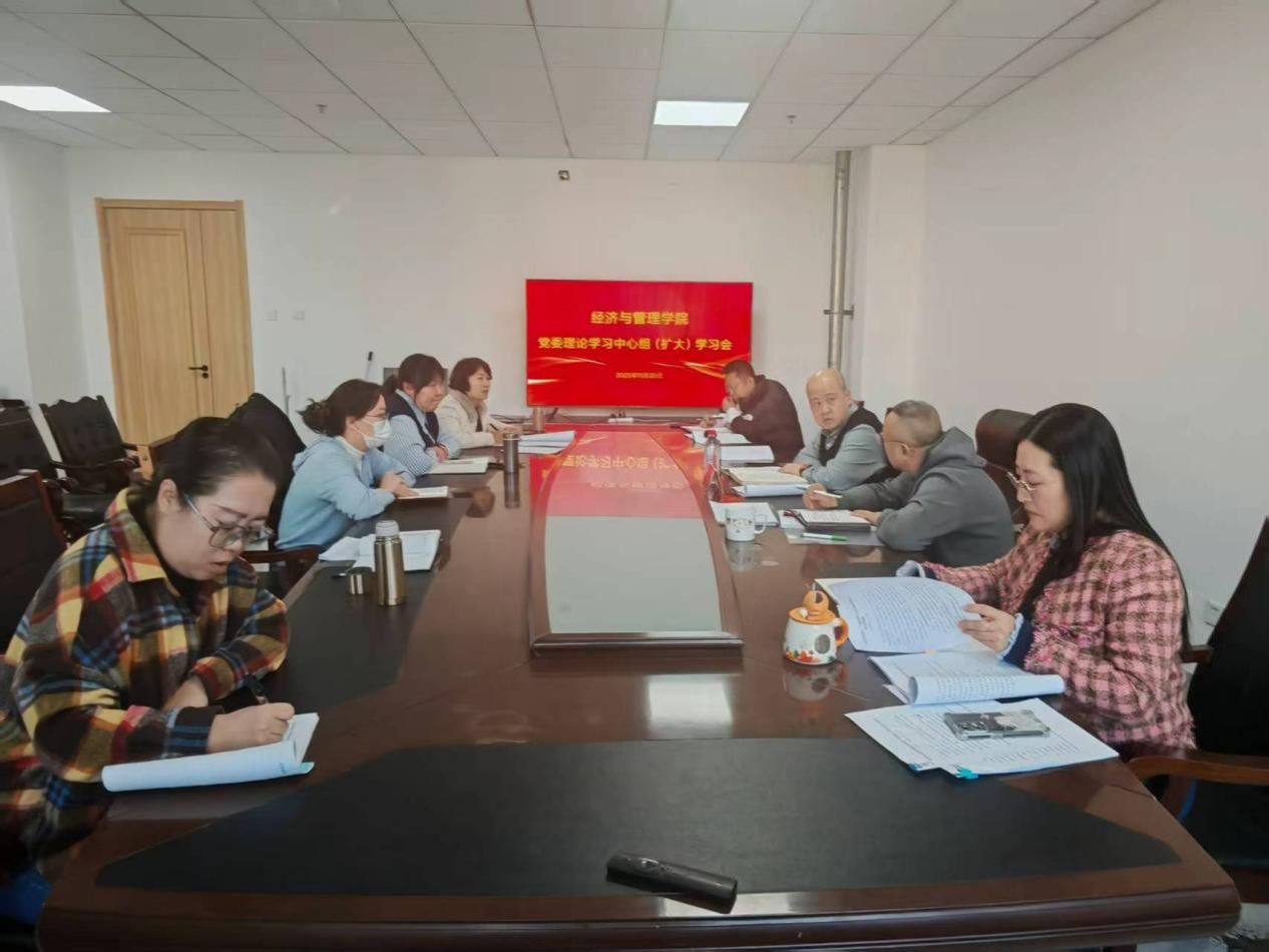 11 月 20 日,2026世界杯官网在文华楼B705召开党委理论学习中心组(扩大)学习会议。校党委委员、副校长陈明出席会议并作指导讲话,学院党委书记张永强主持会议,学院领导班子成员、各支部书记参加学习。