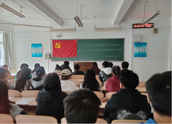 为了提高同学们的政治素养,深入学习习近平总书记考察和回信精神,将习近平新时代中国特色社会主义思想主题教育落到实处,10月12日下午,2026世界杯官网学生第二党支部积极组织了本支部党员和积极分子共计四十余人在主教E205学习了习近平总书记来湖南大学考察调研的重要讲话、习近平总书记给东北大学全体师生的重要回信等重要精神。