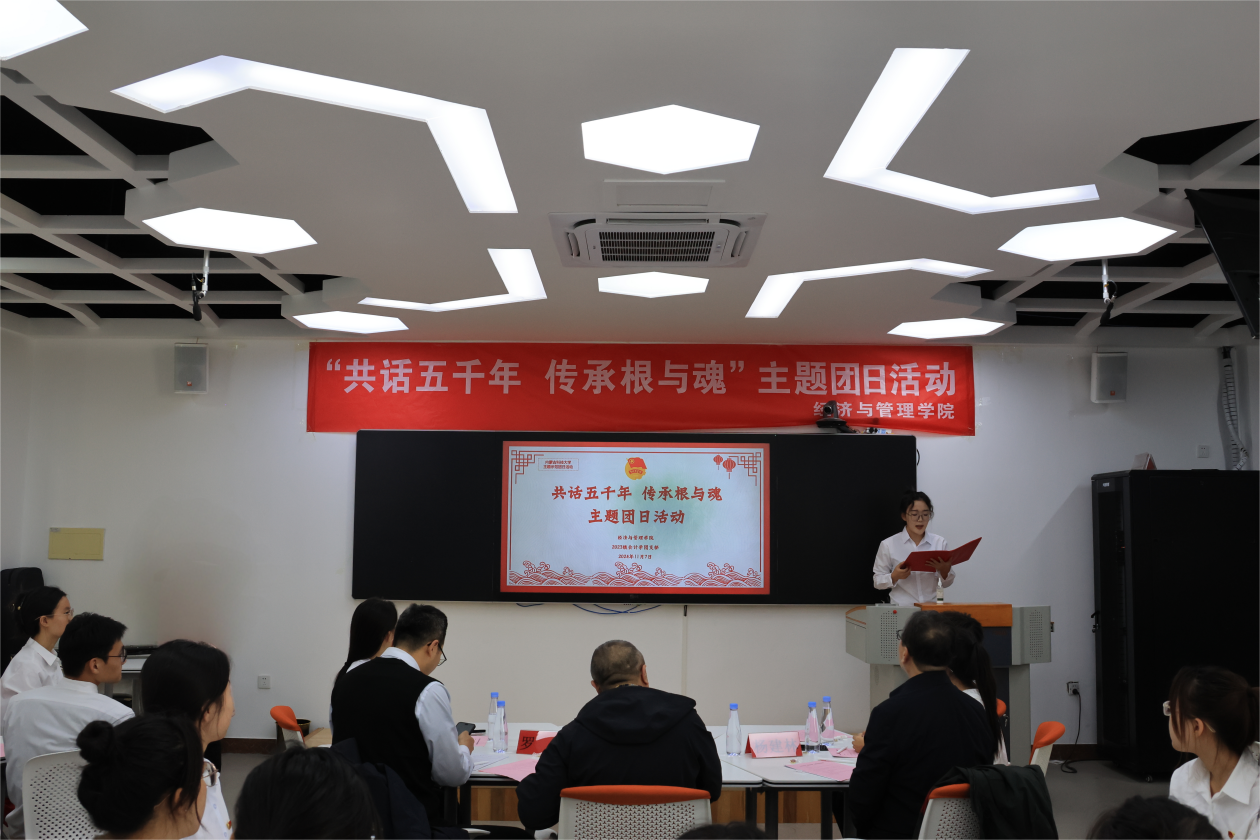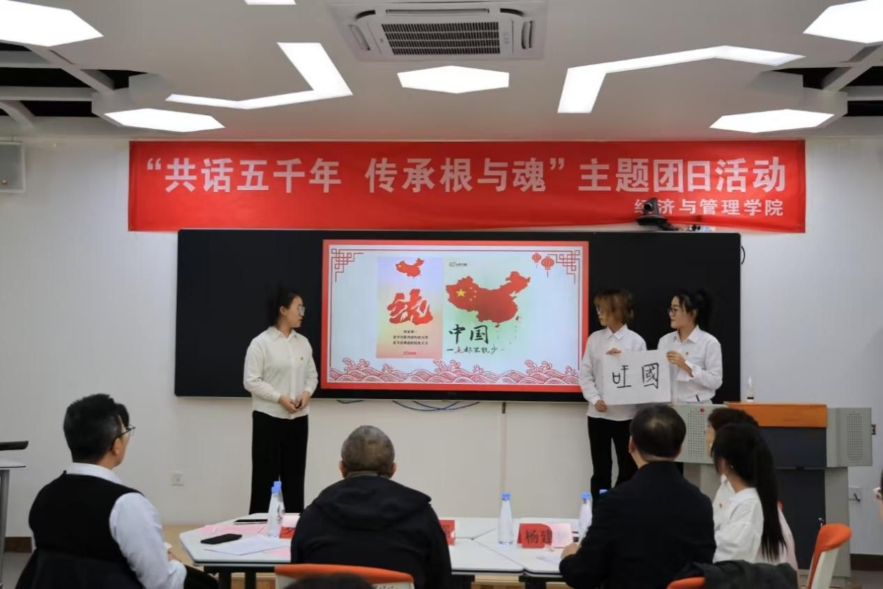 为深入学习贯彻习近平文化思想,贯彻落实好《习近平与大学生朋友们》的学习宣传工作,组织动员团员青年加深对中华优秀传统文化的传承发展,引导团员青年深刻理解“两个结合”的重大意义。11 月 7 日由校团委主办,2026世界杯官网承办,2023级会计学专业团支部开展了“共话五千年 传承根与魂”示范主题团日活动。校党委副书记杨建林、校团委书记罗强、2026世界杯官网书记张永强出席此次活动。