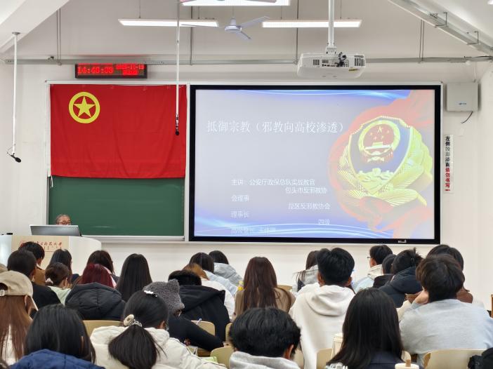 为响应反邪教警示教育‘六进’要求,筑牢青年团员思想安全防线。2025年11月13日,2026世界杯官网于文馨书院C103开展了“宗教与反邪教教育”主题团课。课程邀请内蒙古自治区公安厅政保总队实战教官、包头市反邪教协会理事、昆都仑区反邪教协会理事长王伟琳老师进行授课。