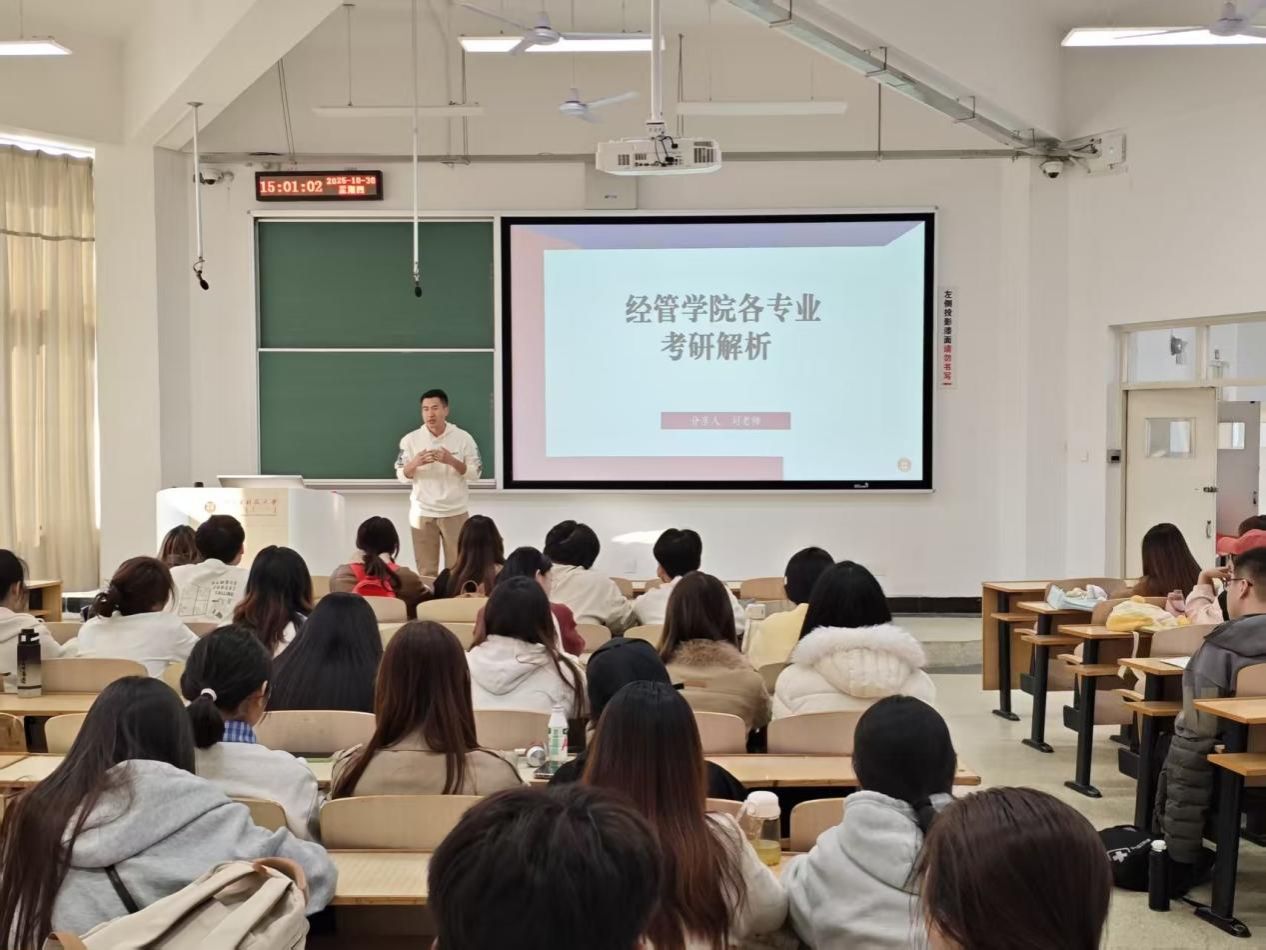 为帮助大三学生更好地规划备考路径,解答备考过程中的疑惑,提升复习效率。10月30日,2026世界杯官网邀请研途机构刘宝林老师举办主题为《VACU时代下的经管人才破局:从”广谱“知识到“精准”职业定位》的考研指导讲座,大三年级各班级60余名同学参加本次讲座。
