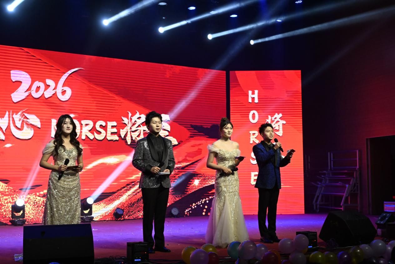 高千惠、田丰悦等人借舞蹈《What is love》用灵动舞姿传递温暖与美好;学院各组织的联欢舞蹈别出心裁,创意十足的编排展现出学生组织的凝聚力与向心力;神骏乐团倾情演绎《吉祥》,悠扬旋律中满含真挚的新年祝愿;最后,全院齐声高歌《相亲相爱》,在激昂旋律中凝聚成万马同驰、同心向前的美好和声。