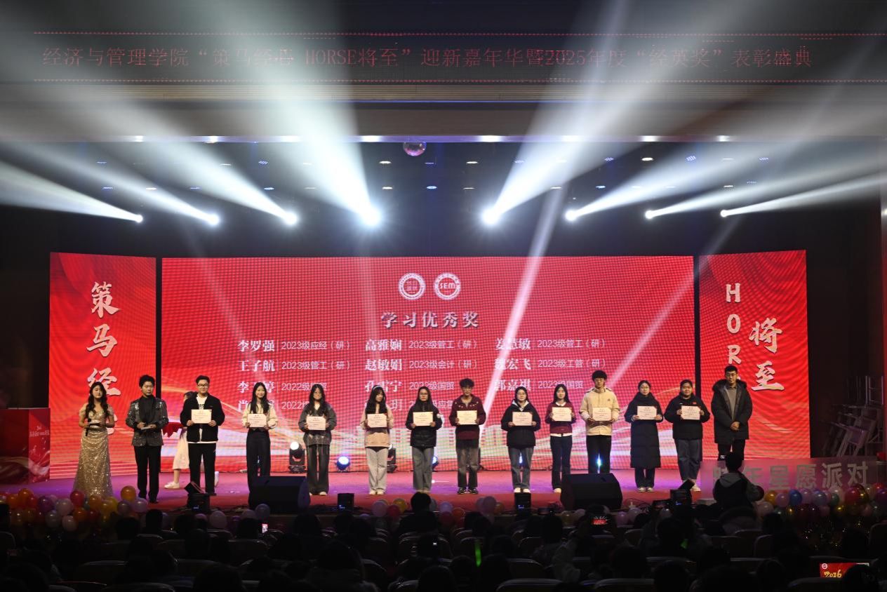 为表彰先进、树立榜样,激励全院师生再攀高峰,晚会设置年度“经英奖”表彰环节。一张张荣誉证书的颁发,不仅是对获奖师生过往辛勤付出、成果斐然的肯定,更是对全体经管人砥砺前行、追求卓越的鞭策。