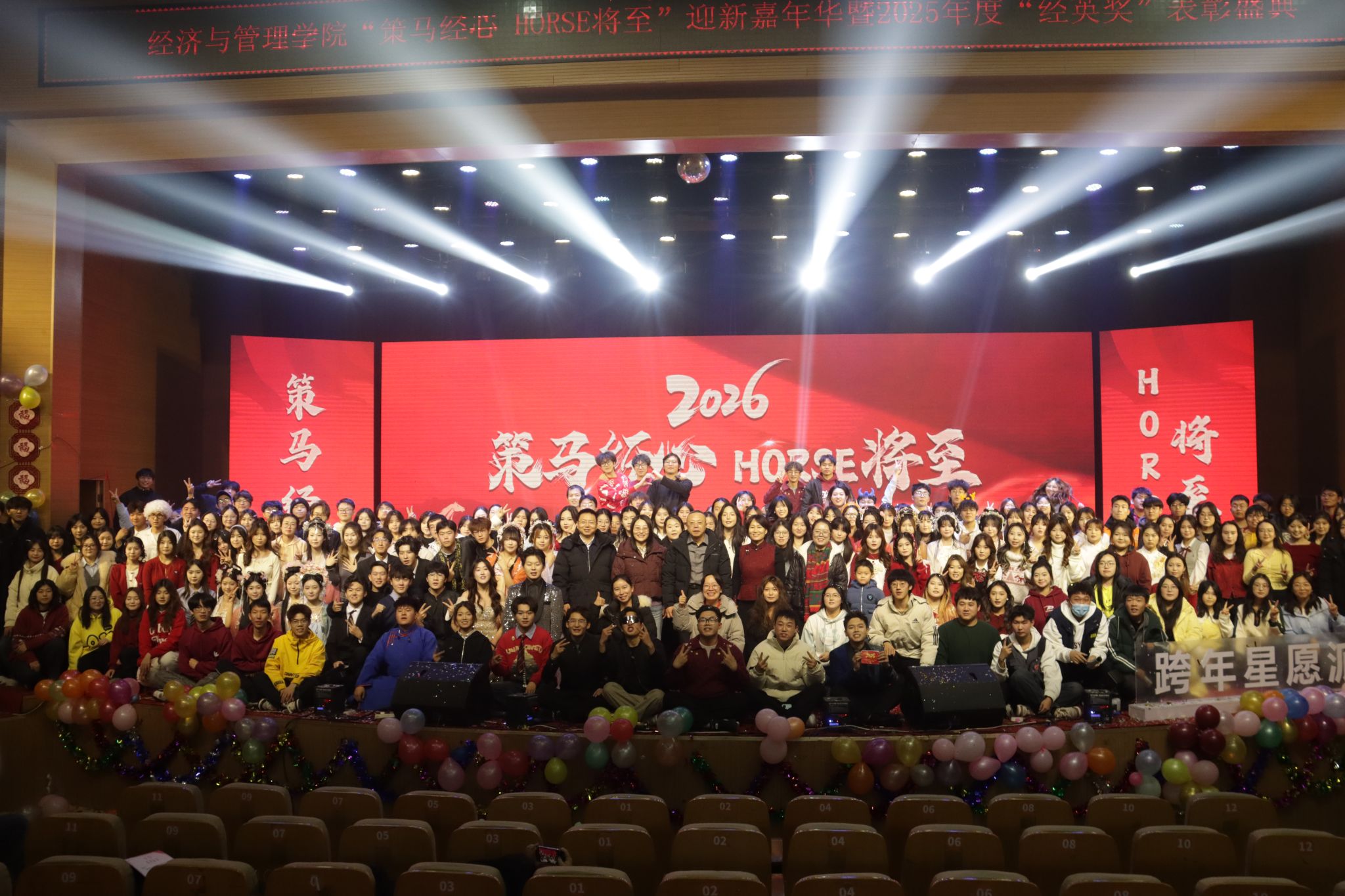 骏马踏歌辞旧岁,经管聚力启新章。2025 年 12 月 28 日,2026世界杯官网 “策马经心,HORSE 将至” 迎新嘉年华暨 2025 年度 “经英奖” 表彰盛典在学校音乐厅璀璨启幕。全院师生齐聚一堂,共赴这场融合青春活力、荣誉表彰与新年期许的年度盛会,在欢声笑语中定格美好时光,在逐梦征程上凝聚奋进力量。
