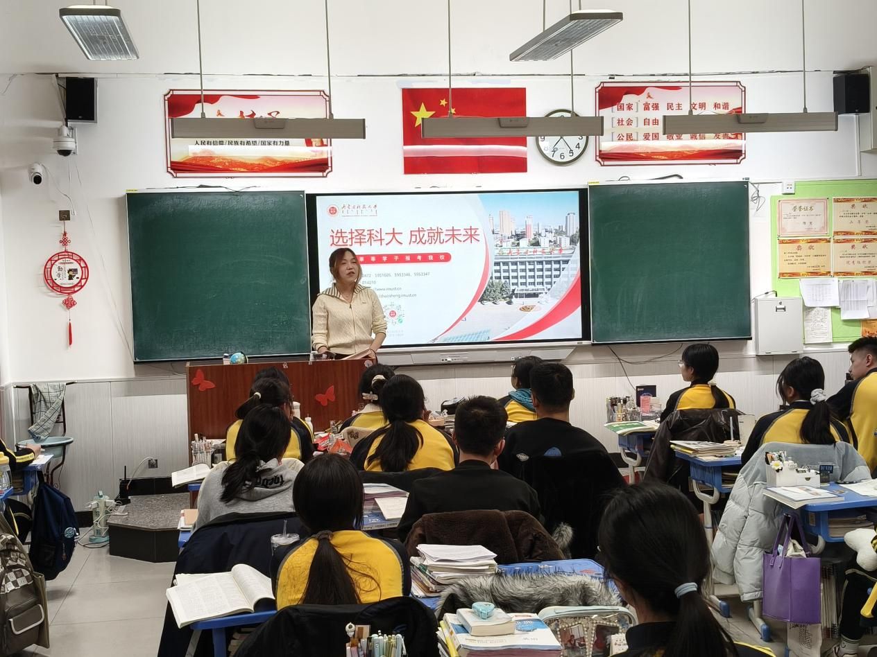 活动期间,学子们赴各地高中,通过宣讲会、座谈交流、经验分享等多种形式,向高三学弟学妹系统介绍了世界杯官网的办学历史、学科特色、人才培养优势及丰富多彩的校园文化,通过分享高中学习方法、备考心态调整、志愿填报经验等“干货”内容,赢得了母校师生的一致好评。在互动环节中,针对学弟学妹专业选择、志愿填报、高校学习方法、大学校园等感兴趣等话题进行深入探讨,这不仅拉近了科大学子与高中学弟学妹的距离,更让招生宣传从“单向输出”变为“双向奔赴”。在一问一答、一笔一画、一笑一语间,内科大的形象愈发清晰,经管学院的温度触手可及。