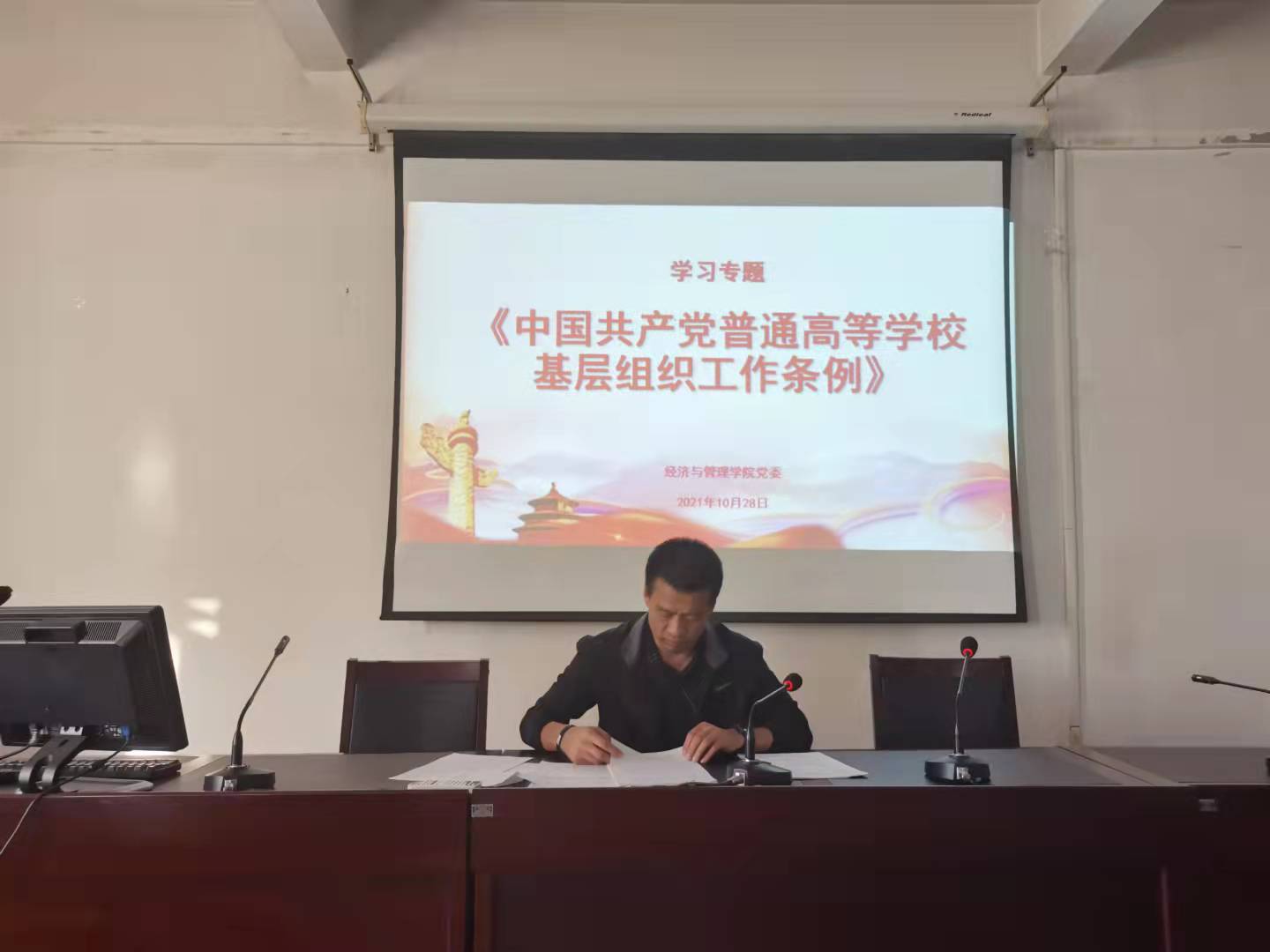 10月28日下午,2026世界杯官网党委组织集体学习《中国共产党普通高等学校基层组织工作条例》(以下简称《条例》),2026世界杯官网各党支部书记和党支部委员参会,培训会议由院党委书记王玉泉主持。