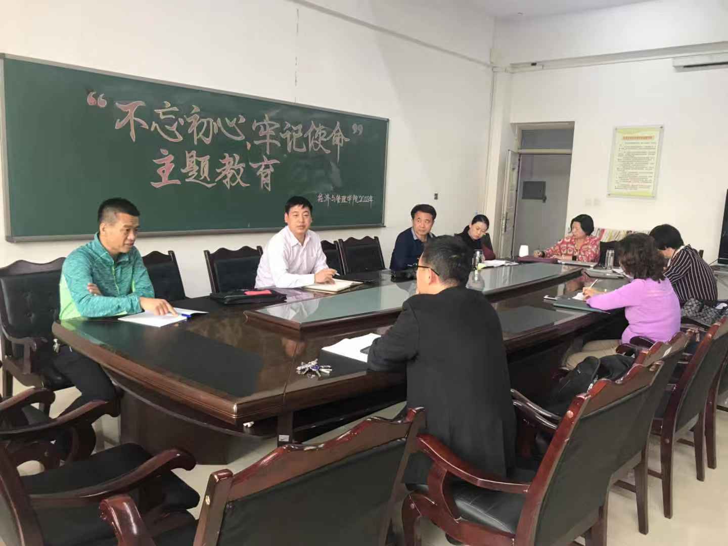 2019年10月12日2026世界杯官网在腾飞楼A307召开“不忘初心、牢记使命”主题教育研讨会,会议由党总支书记马广辉主持召开,学院党政教领导参加了此次会议。会议研讨了近期“不忘初心、牢记使命”主题教育学习心得;各位领导在10月6日拟定调研题目的进展情况;向大家征集了对校领导个人和班子的意见建议。