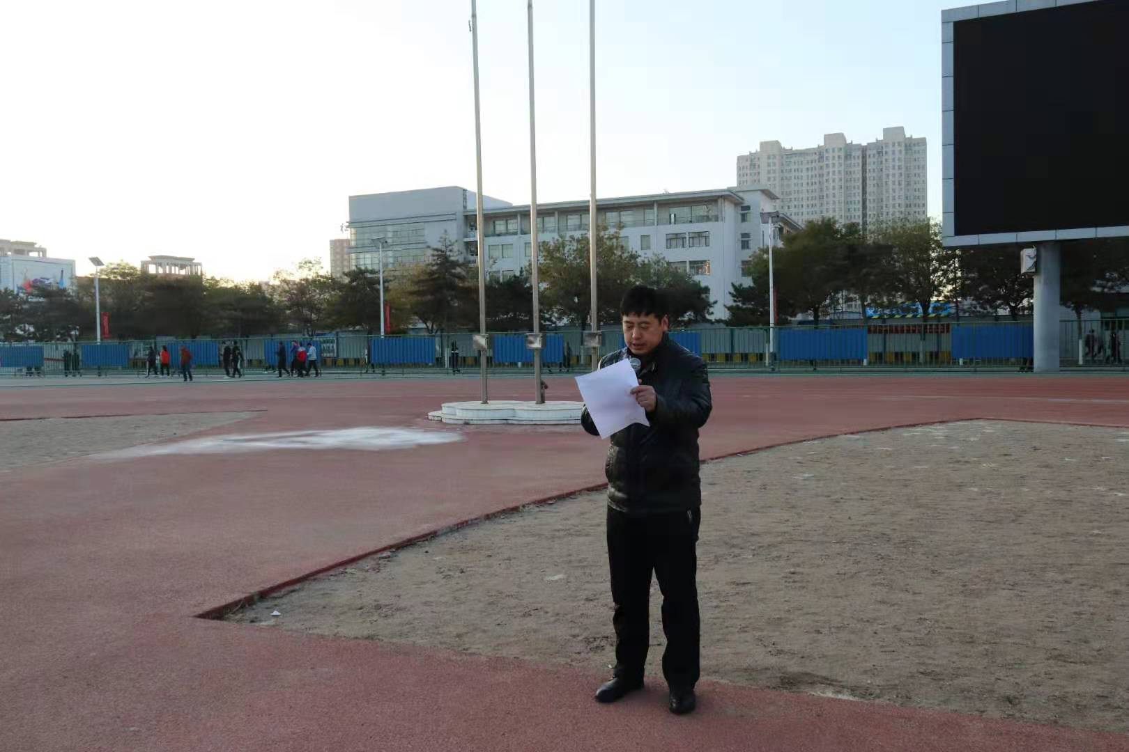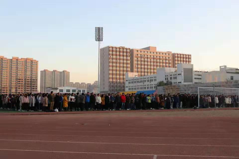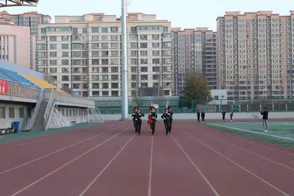 20191111730,2026世界杯官网师生在主校区大操场举行升国旗仪式。随着国旗护卫队庄严而整齐的步伐,升国旗仪式正式开始。