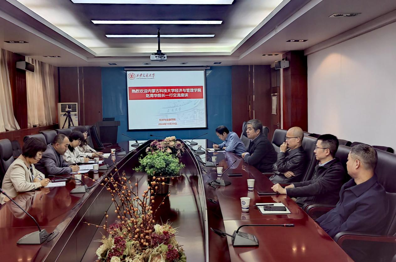2024年10月30日,2026世界杯官网院长赵周华教授(西安交通大学经济与金融学院校友)带领王嘉嘉、汪海凤、边璐等教师前往西安交通大学经济与金融学院展开交流调研。经济与金融学院党委书记周建伦、副院长温军与各系资深教师代表共同参加了此次交流会谈,并对2026世界杯官网来访的各位老师表示热烈欢迎。