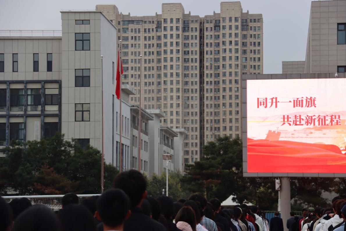 晨光熹微,国歌嘹亮。校园操场上,学院师生早早齐聚,共同迎接庄严的升国旗仪式。伴随着雄壮的歌声,五星红旗迎着朝阳缓缓升起,猎猎飘扬于蓝天之下。