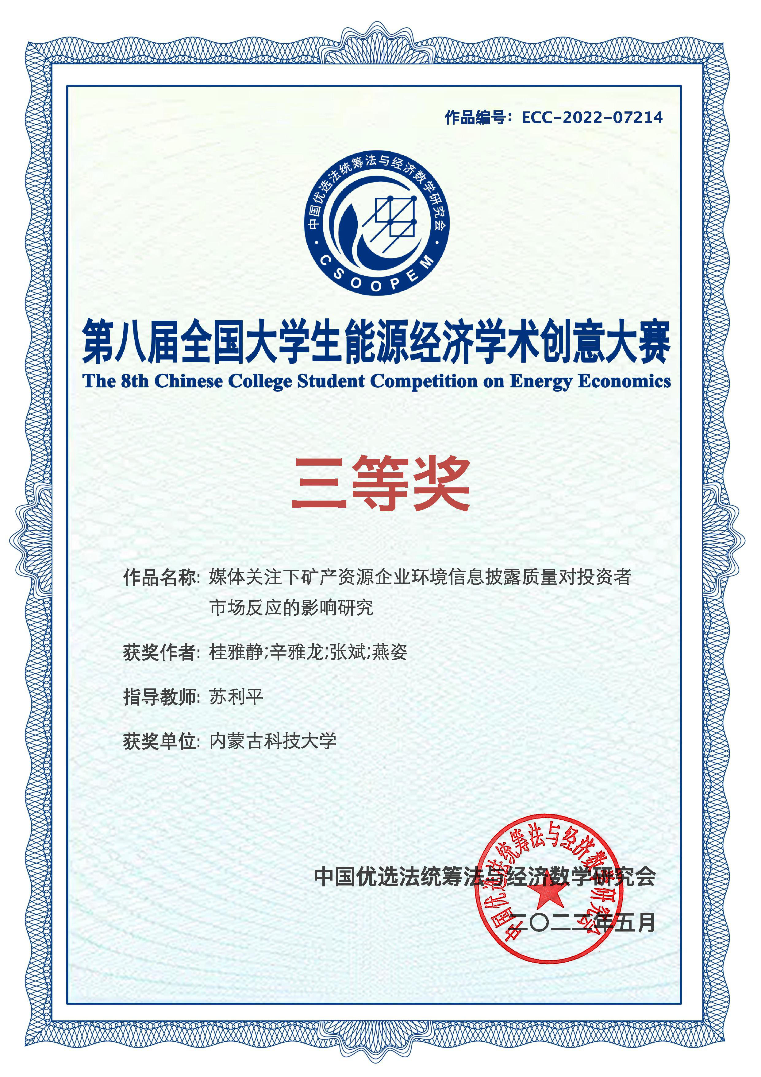下一条:2026世界杯官网师生荣获第八届全国大学生能源经济学术创意大赛第5赛区-大学生队三等奖