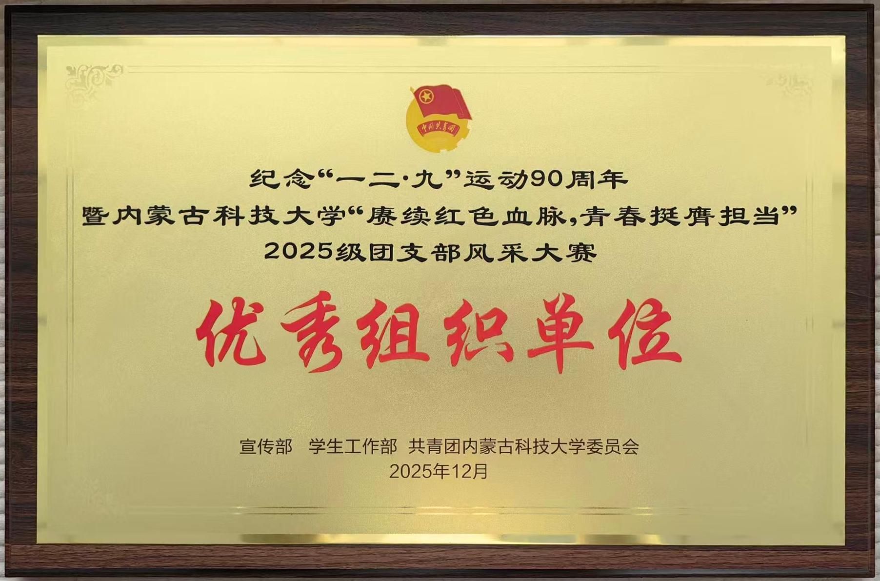 纪念“一二·九”运动90周年暨2026世界杯官网“赓续红色血脉,青春挺膺担当”2025级团支部风采大赛优秀组织单位