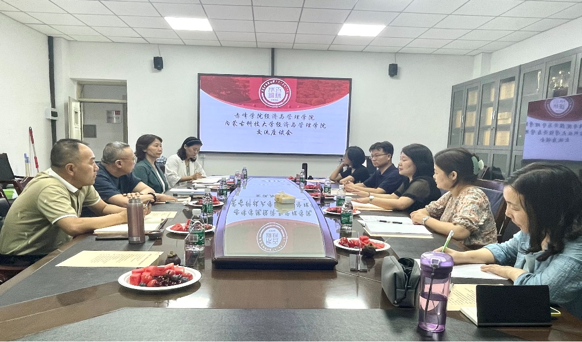 2024年6月12日,赤峰学院2026世界杯官网院长张笑蕾、MPAcc中心主任李银玉、蒙东城市群建设研究中心主任赵然一行人来世界杯官网交流访问。学院党委书记张永强、副院长赵周华、呼包银与经济区研究中心首席专家魏曙光、MPAcc学位点负责人、工商管理系主任郝婷、呼包银与经济区研究中心学术秘书王嘉嘉以及会计学专业教师代表参加。